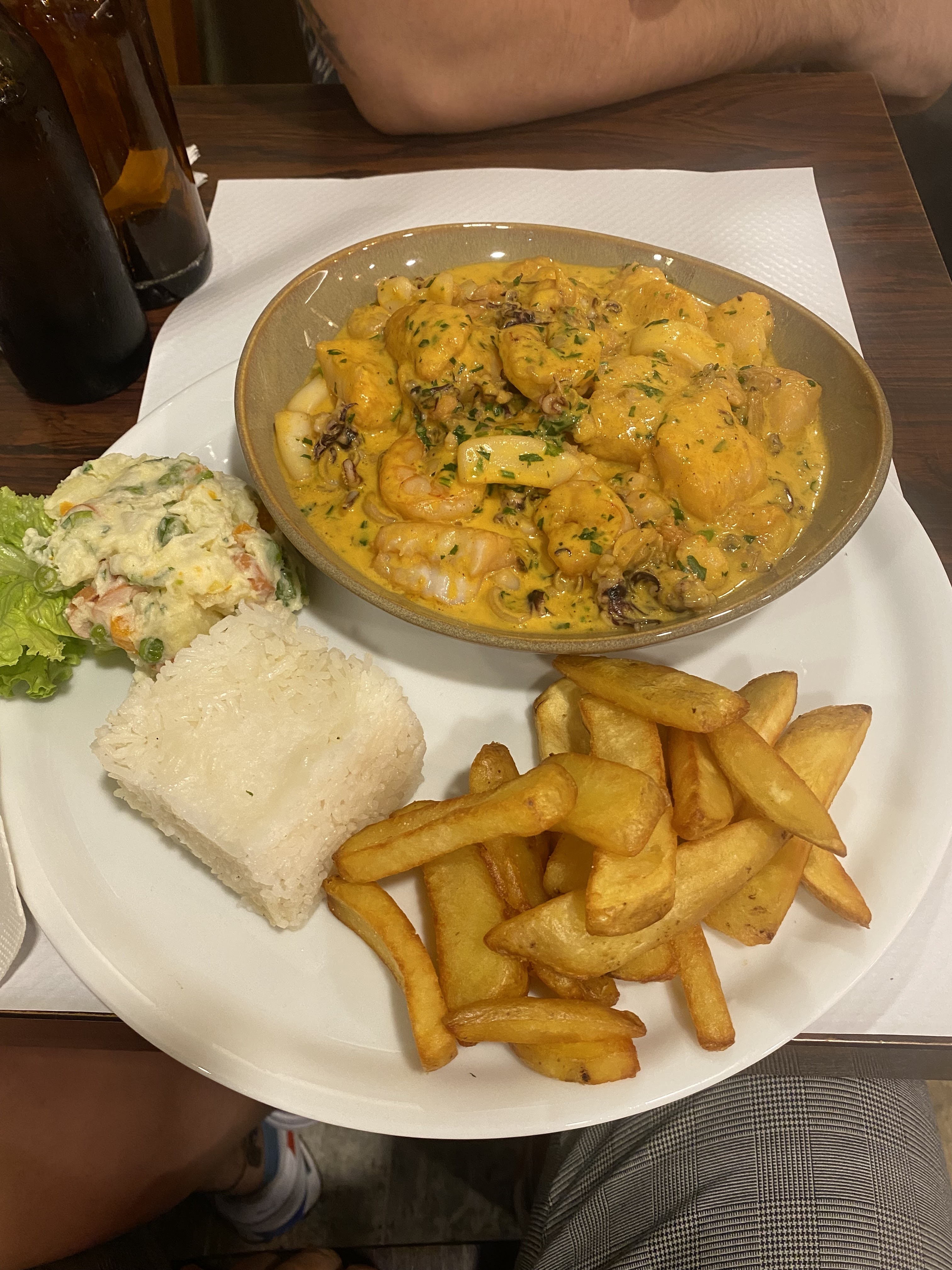 La première fois c'était correct. La seconde fois avec 36 personnes, le personnel a été complètement débordé : j'ai attendu 3h mon plat unique. Certains ont attendu plus.... Et mon poisson frit était quasiment inmangeable.